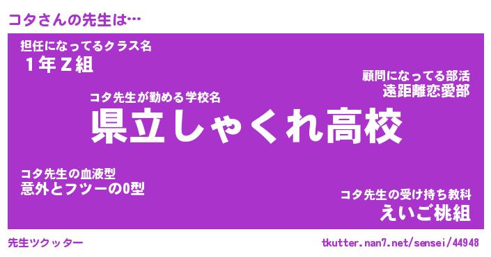 | ヘコむあだ名 | 『コタっふぃ~』『つくし』 |