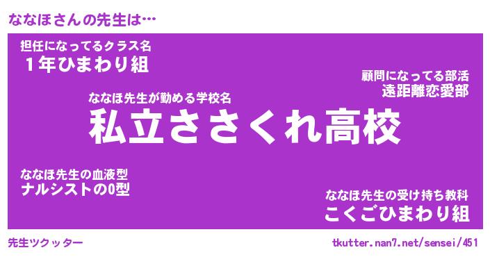 | ヘコむあだ名 | 『ななもー』『なまこ酢』『ななを』 |