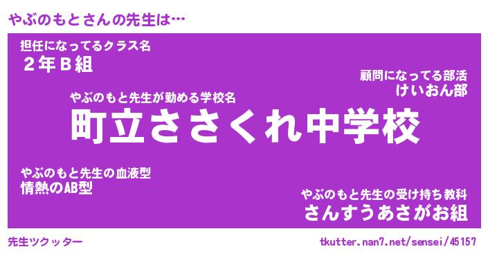 | ヘコむあだ名 | 『やぶもー』『牛乳』『やぶを』 |