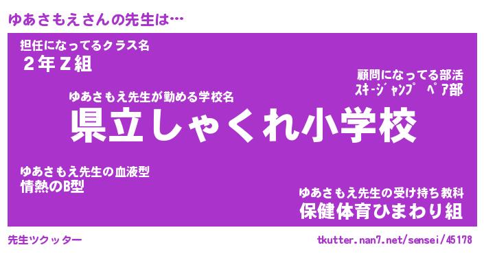 | 伝説のあだ名 | 『不死鳥のスナイパーゆあさもえ』 |