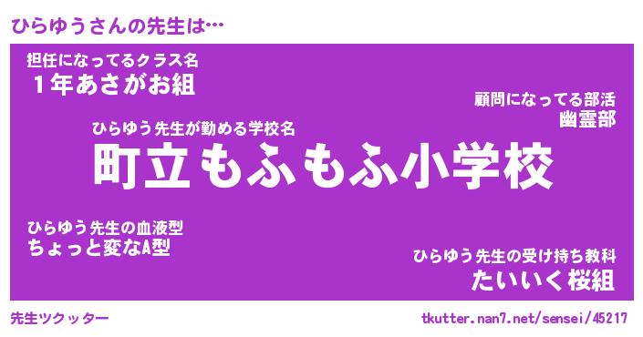 | ヒーロー風カッコイイあだ名 | 『スーパーヒラユウ』『幻影騎士ヒラ』 |