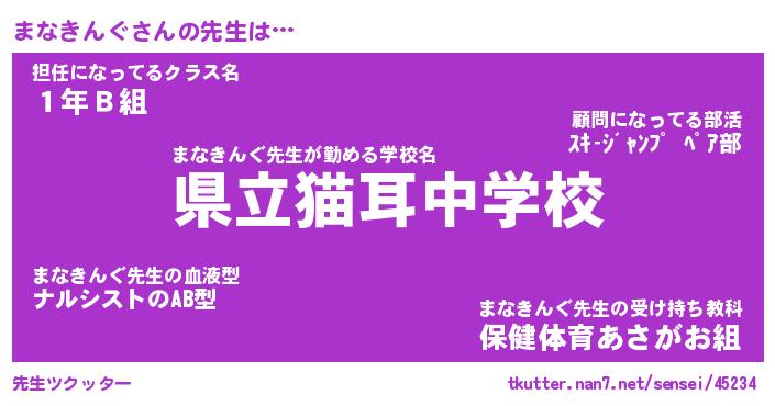 | 欧米人風あだ名 | 『マイケルまなきんぐ』 |
