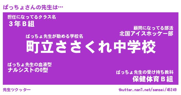 | 意味不明あだ名 | 『ペロリンばっちょ』『永久保存ばっちょ』 |