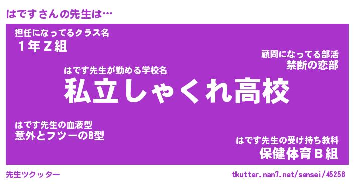 | ヒーロー風カッコイイあだ名 | 『スーパーハデス』『ウルトラはですマン』 |