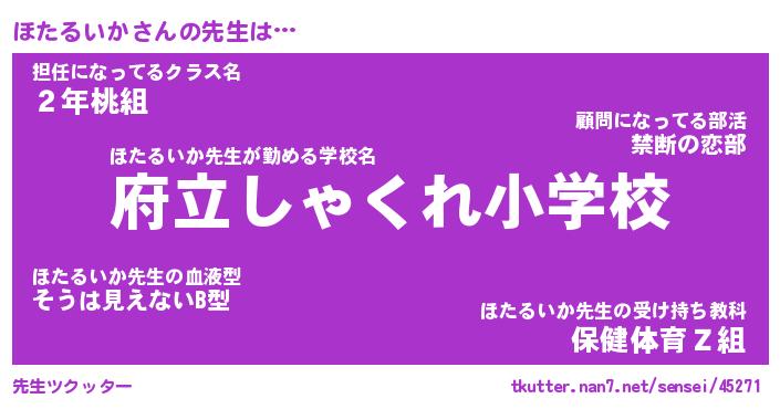 | ファンタジー風あだ名 | 『ホタフェル』『エターナルホタルイカー』 |