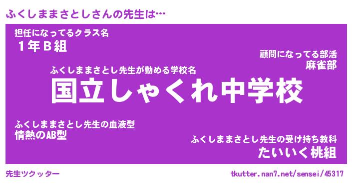 | 伝説のあだ名 | 『伝説のスナイパーふくしままさとし』 |