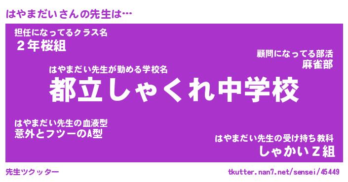 肩書あだ名 | 『はやまだい御曹司』『はやまだい班長』 |