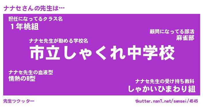 | ヒーロー風カッコイイあだ名 | 『スーパーナナセ』『ウルトラナナセマン』 |