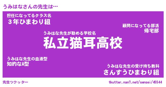 | ファンタジー風あだ名 | 『ウミフェル』『エターナルウミハナー』 |