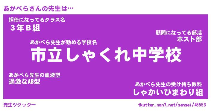 | 伝説のあだ名 | 『伝説のスナイパーあかぺら』 |