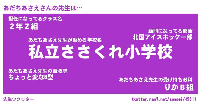 | ポケモン風あだ名 | 『アダチュウ』『アダチダネ』 |