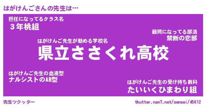 | ファンタジー風あだ名 | 『ハガフェル』『エターナルハガケンゴー』 |
