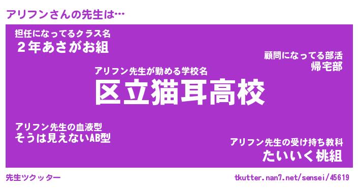 | ファンタジー風あだ名 | 『アリフェル』『エターナルアリフンー』 |