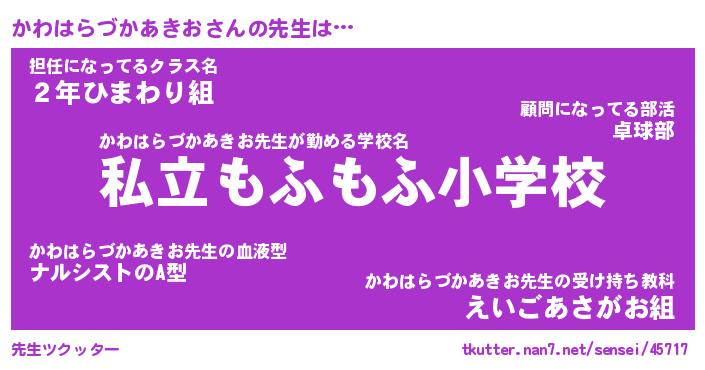 | 肩書あだ名 | 『かわはらづかあきお店長』 |