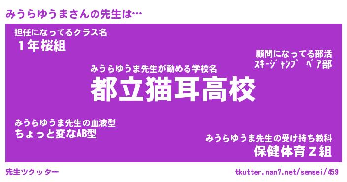 | ヒーロー風カッコイイあだ名 | 『スーパーミウラユウマ』『魔戒騎士ミウ』 |