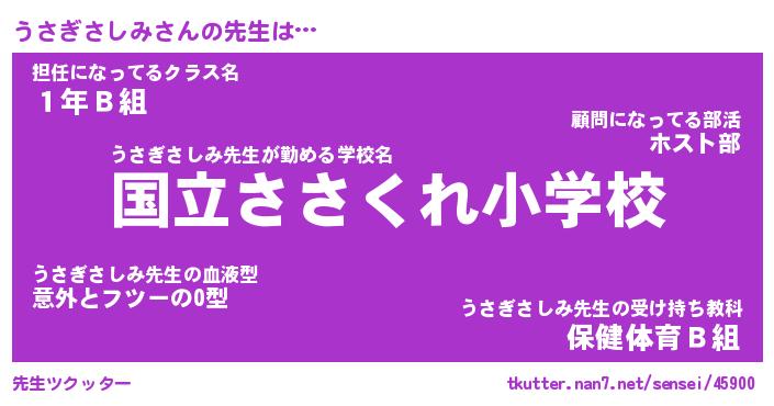 | ヒーロー風カッコイイあだ名 | 『スーパーウサギサシミ』『黄金騎士ウサ』 |