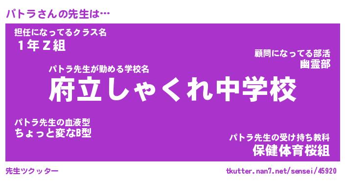 | 意味不明あだ名 | 『ペロリンパトラ』『パトラフォーエバー』 |