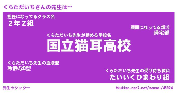 | ヒーロー風カッコイイあだ名 | 『スーパークラタダイチ』『銀牙騎士クラ』 |