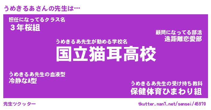 | ヒーロー風カッコイイあだ名 | 『スーパーウメキルア』『天弓騎士ウメ』 |