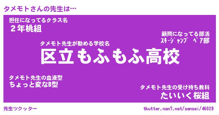 | ファンタジー風あだ名 | 『タメフェル』『エターナルタメモトー』 |