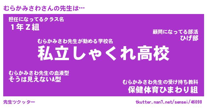 | 伝説のあだ名 | 『伝説のスナイパーむらかみさわ』 |
