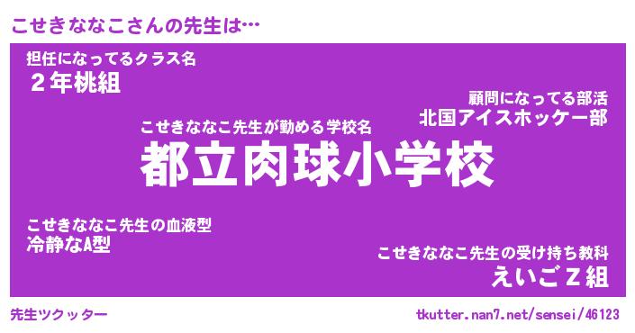| ヒーロー風カッコイイあだ名 | 『スーパーコセキナナコ』『魔戒騎士コセ』 |
