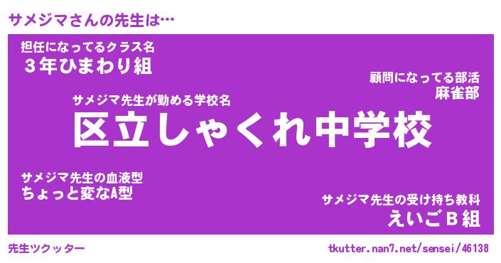 | ファンタジー風あだ名 | 『サメフェル』『エターナルサメジマー』 |