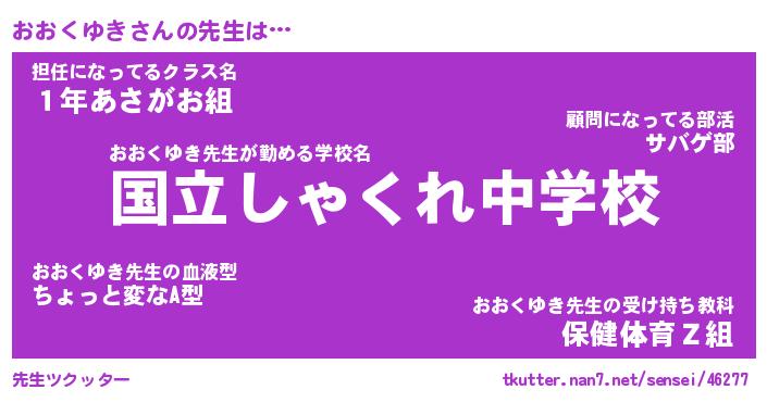 | ヒーロー風カッコイイあだ名 | 『スーパーオオクユキ』『幻影騎士オオ』 |