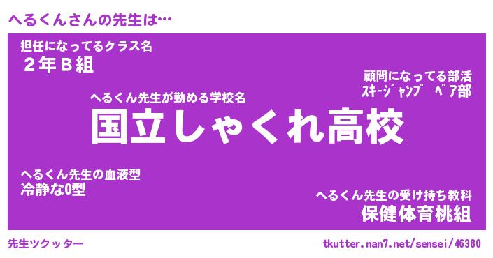 | 意味不明あだ名 | 『ペロリンへるくん』『永久保存へるくん』 |