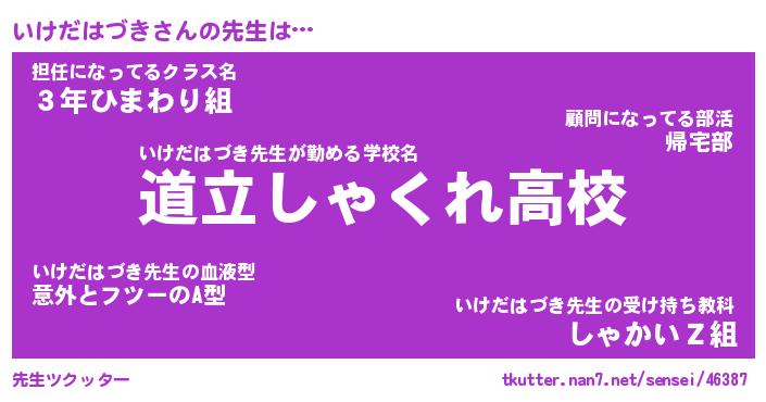 | ヒーロー風カッコイイあだ名 | 『スーパーイケダハヅキ』『暗黒騎士イケ』 |