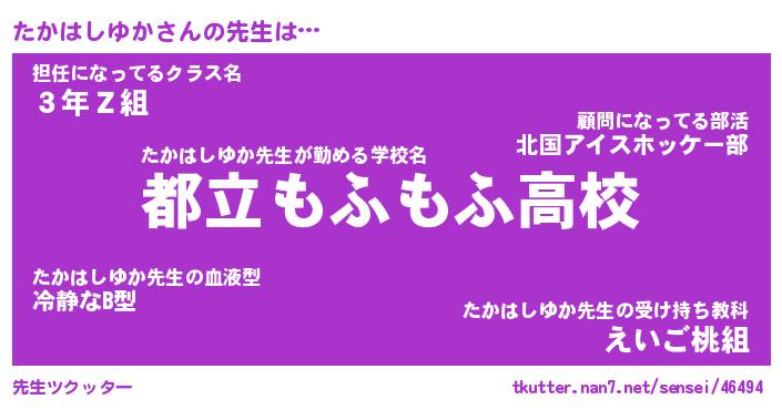 | 肩書あだ名 | 『たかはしゆか店長』『たかはしゆか担任』 |