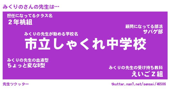 | ヘコむあだ名 | 『みくっふぃ~』『なまこ酢』 |