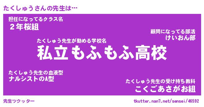 | 男性向けラノベタイトル風あだ名 | 『たくしゅうの憂鬱』 |