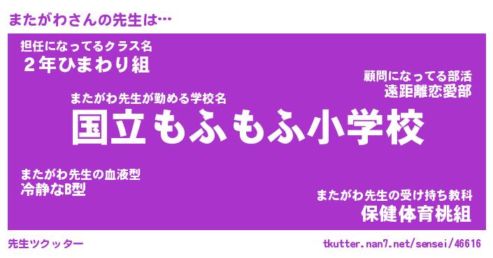 | 意味不明あだ名 | 『ペロリンまたがわ』『永久保存またがわ』 |