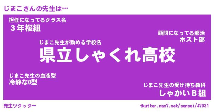 | ファンタジー風あだ名 | 『ジマフェル』『エターナルジマコー』 |