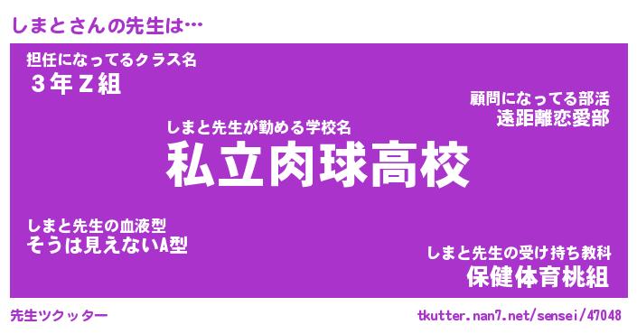 | ファンタジー風あだ名 | 『シマフェル』『エターナルシマトー』 |