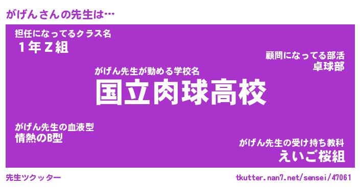 | ファンタジー風あだ名 | 『ガゲフェル』『エターナルガゲンー』 |