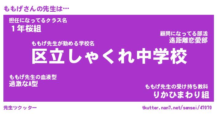 | 意味不明あだ名 | 『ペロリンももげ』『ももげフォーエバー』 |