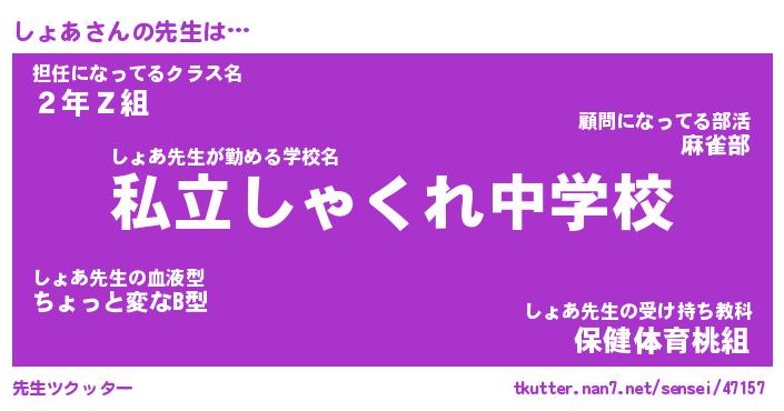 | 伝説のあだ名 | 『伝説のスナイパーしょあ』 |