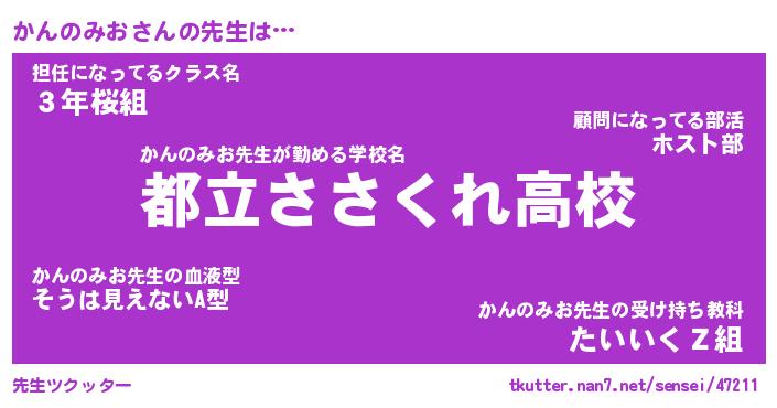 | 肩書あだ名 | 『かんのみお社長令嬢』『かんのみお班長』 |