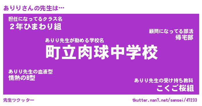 | 意味不明あだ名 | 『ペロリンありり』『ありりフォーエバー』 |