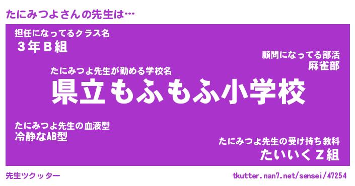 | ファンタジー風あだ名 | 『タニフェル』『エターナルタニミツヨー』 |