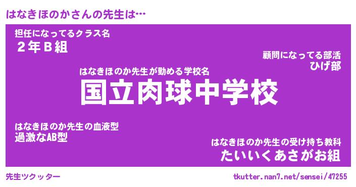 | ヘコむあだ名 | 『はなふぇ~』『なまこ酢』 |
