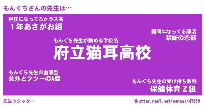 | 意味不明あだ名 | 『ペロリンもんぐち』『永久保存もんぐち』 |
