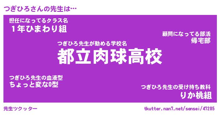 | 意味不明あだ名 | 『ペロリンつぎひろ』『永久保存つぎひろ』 |
