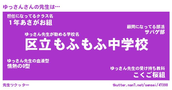 | 意味不明あだ名 | 『ペロリンゆっさん』『永久保存ゆっさん』 |