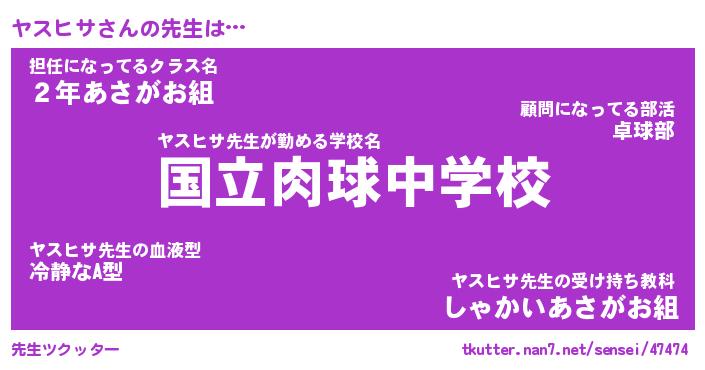 | ヘコむあだ名 | 『ヤスふぇ~』『豆乳』『ヤスっ子』 |