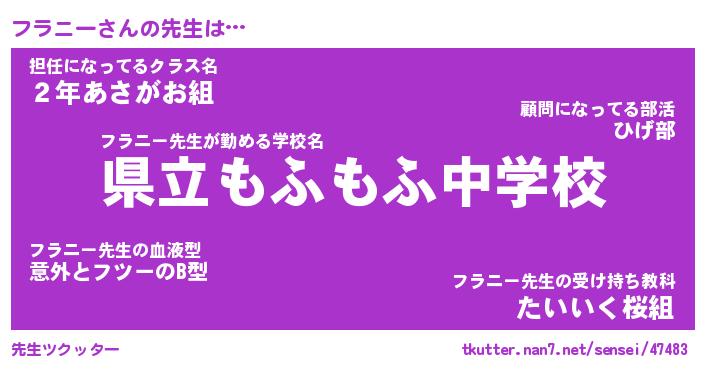| 意味不明あだ名 | 『ペロリンフラニー』『永久保存フラニー』 |