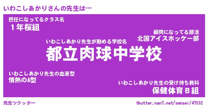 | ヘコむあだ名 | 『いわふぇ~』『つくし』『いわお』 |