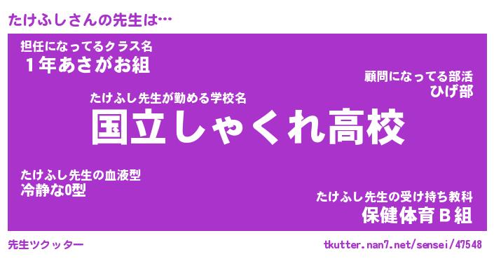 | 意味不明あだ名 | 『ペロリンたけふし』『永久保存たけふし』 |